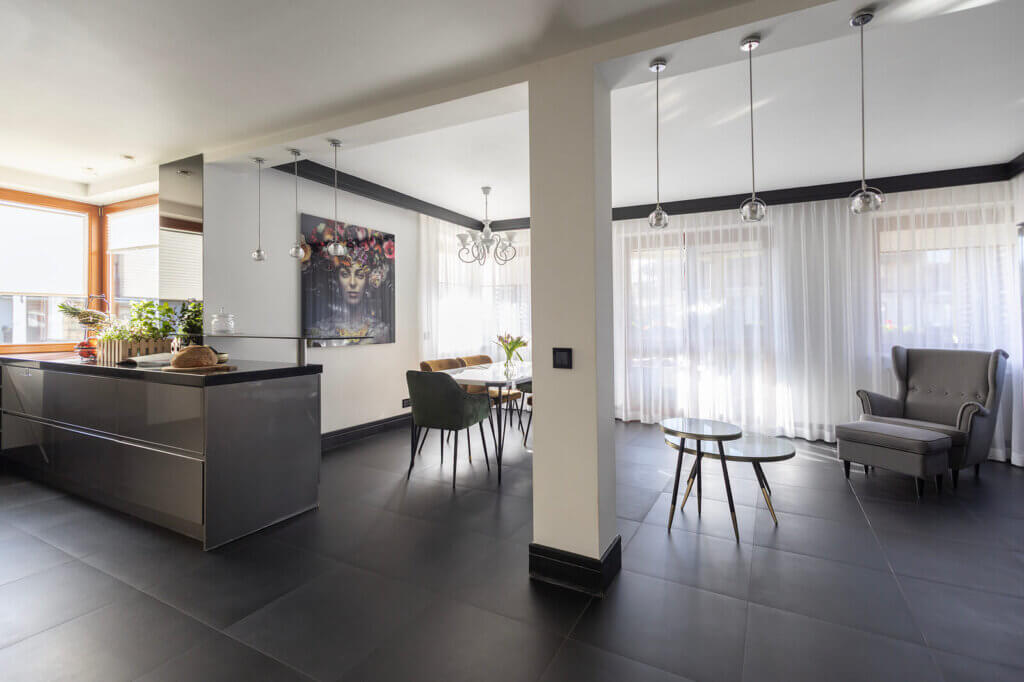 Przemyślany układ pomieszczeń daje ogromną wygodę codziennego życia — w mieszkanie funkcjonujesz jak kompaktowym domu.