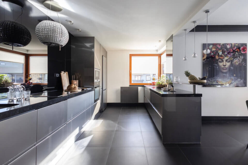 Drewniane, wysokiej jakości okna, w części pomieszczeń elegancka terakota, w pozostałych winyl premium, materiały i wyposażenie z najwyższej półki, pełna klimatyzacja salonie i kuchni.